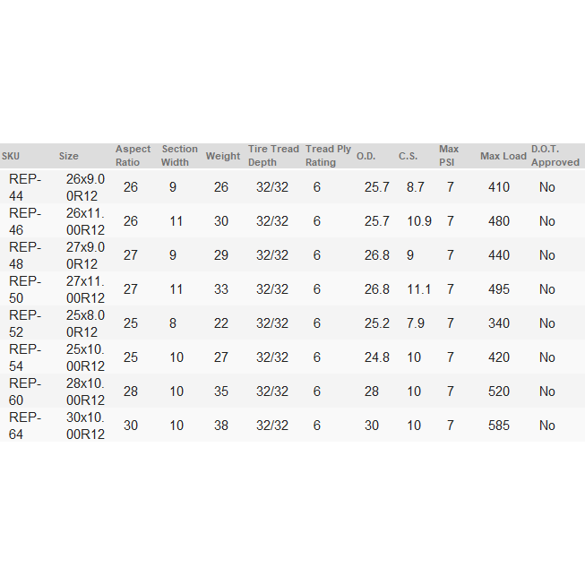 Interco Radial Reptiles have a 1" tread depth and are available in 25 to 30" height sizes and up to a 20” ATV wheel size.