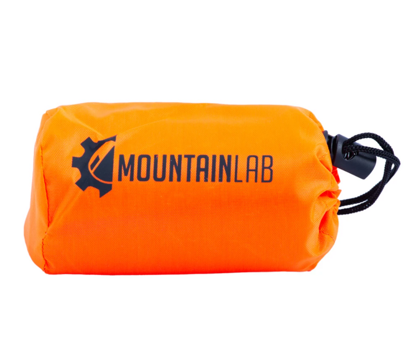 If things go sideways and you are forced to spend a night out in the woods the Mountain Lab emergency blanket could be a crucial element for your survival. This extremely lightweight and ultra-compact bivy is made from aluminum coated polyethylene which is designed to reflect up to 90% of your body heat back to you. Take it with you wherever your next adventure leads.