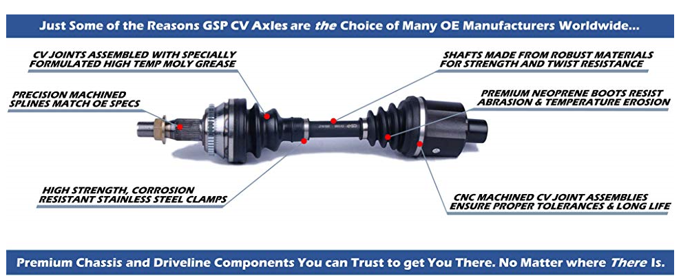 Quality and affordable heavy-duty CV axles from GSP are not as well known when compared to Rhino, High Lifter, Warthog or Titan axles. GSP is a huge automotive driveline components manufacturer. A lot of the top ATV and UTV brand-name axles are produced in their factories. Without the middle man GSP can offer you a quality piece at a great price. See "FITS" tab for application.