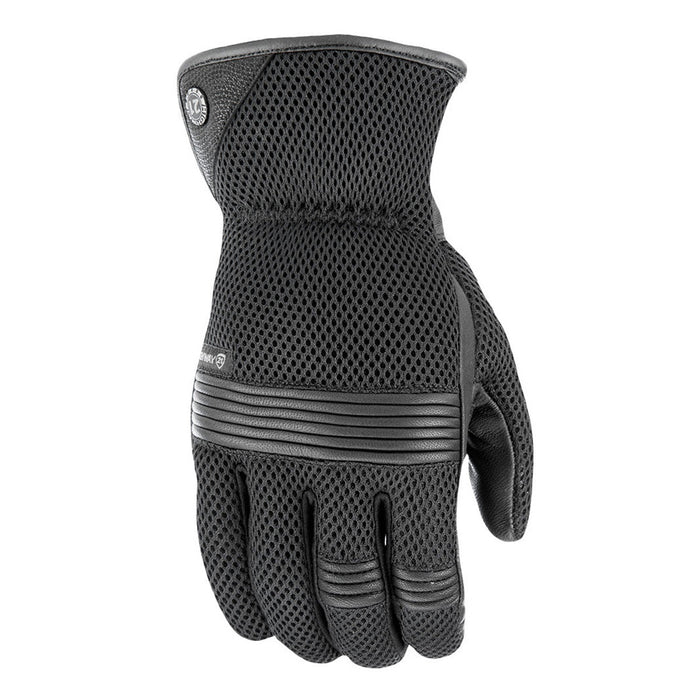 The Highway 21 Turbine Motorcycle Glove is essential gear for your riding kit. With its high-flow mesh body and superb fit, the rush of cooling air on those hot days is a blessing. Full leather palms ensure slide protection and confident bar feel. Carefully placed impact padding on the palm helps reduce vibration. Pre-curved fingers and snap-cuff closure ensure superb fit, outstanding comfort and security. Leather accordion knuckle panels provide additional protection.