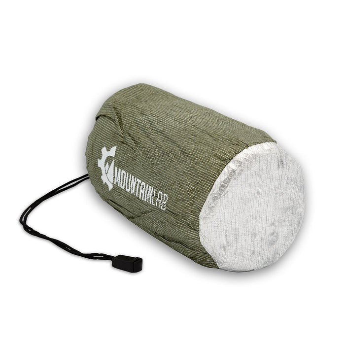 The Mountain Lab Exhale Breathable Sleeping Bag is constructed of a four-ply material developed by NASA to breathe effectively yet still reflect 70-90% of a person’s body heat. The advanced material is much stronger than a typical lightweight emergency bivy or blanket.